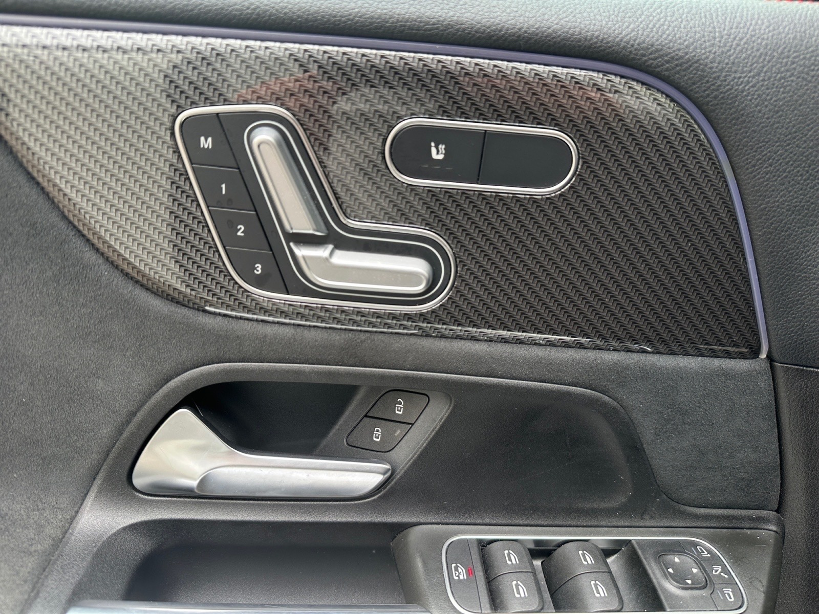 Partie centrale des contre-portes/accoudoirs recouverts de microfibre DINAMICA noire avec doubles surpiqûres rouges.