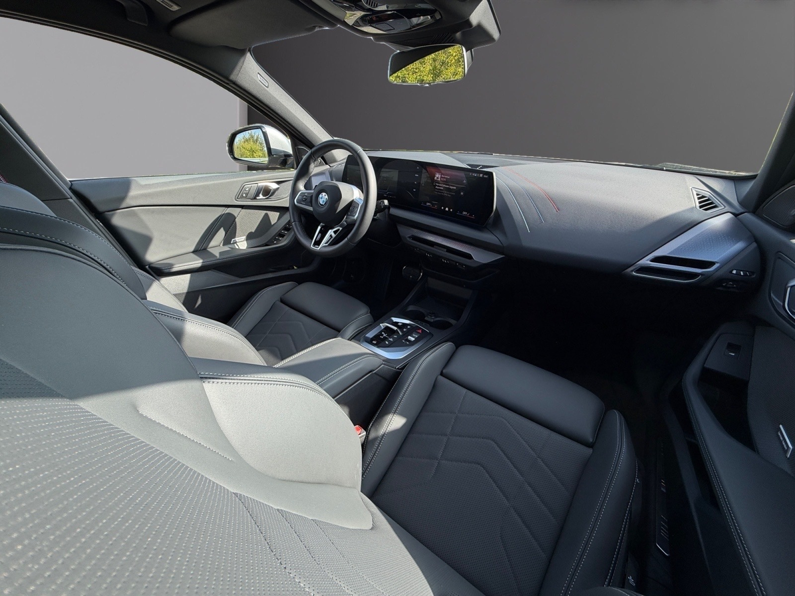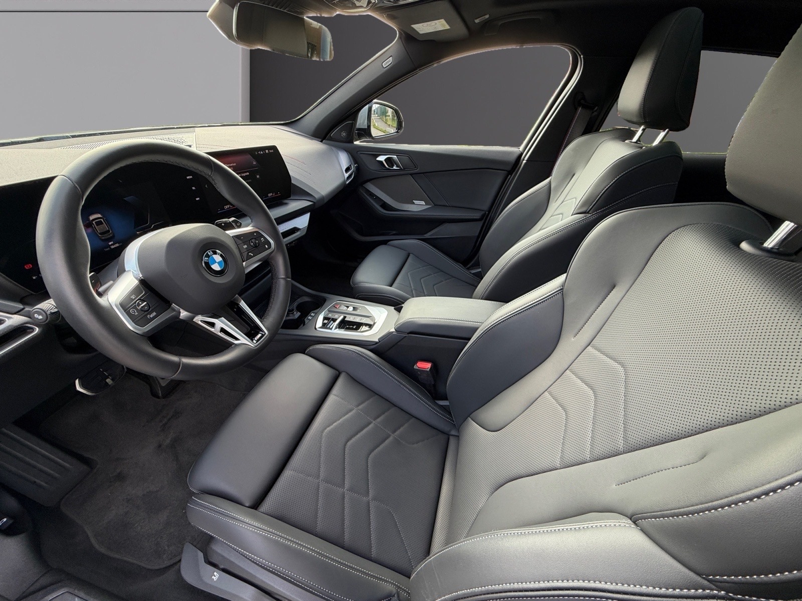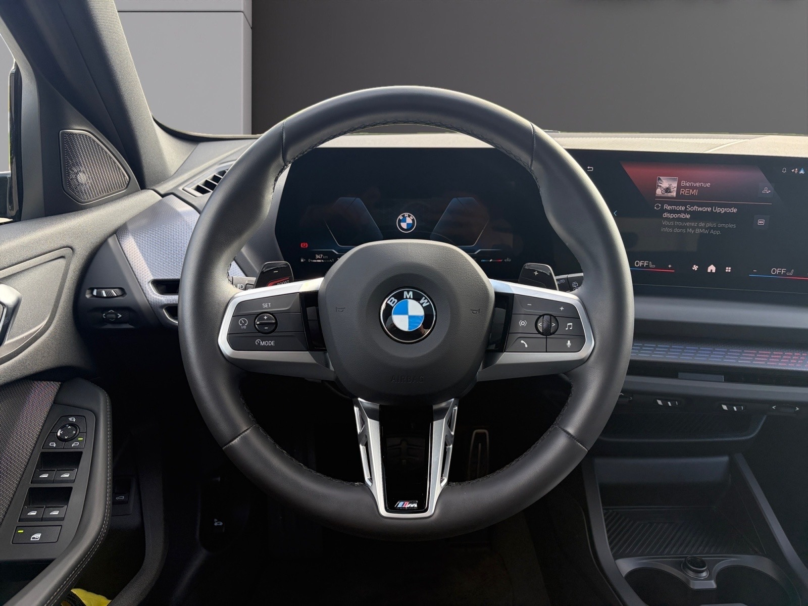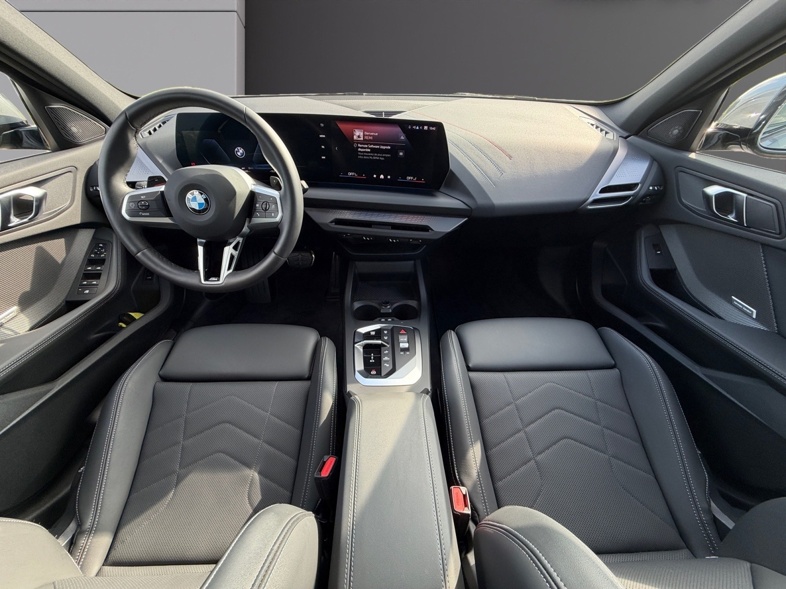 BMW Série 1 F70, finition M Sport, moteur essence BMW TwinPower Turbo 170cv (couple 280 Nm) avec hybridation électrique légère 48V, boite automatique 7 rapports à double embrayage DKG7 et palettes au volant (avec fonction M boost).
