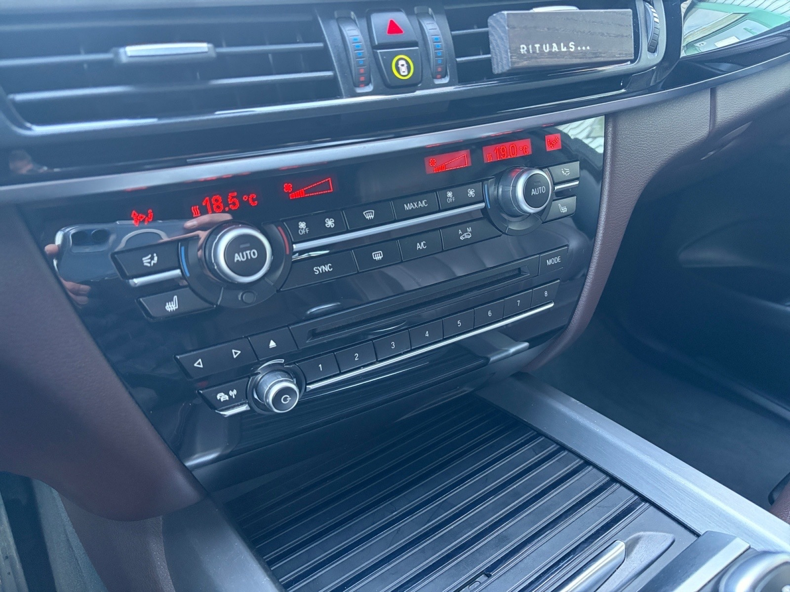 Application brillante "schwarz" entourant les commandes audio et de climatisation au niveau de la console centrale