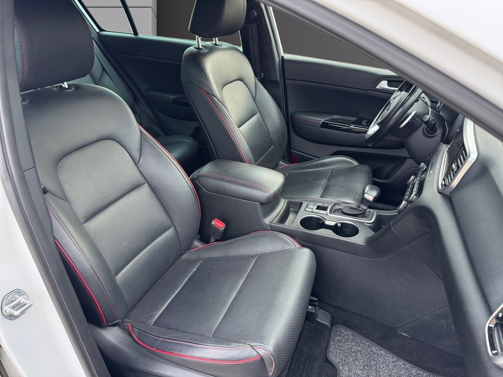 Sellerie cuir noir, cuir tendu et perforé avec surpiqûres rouges
